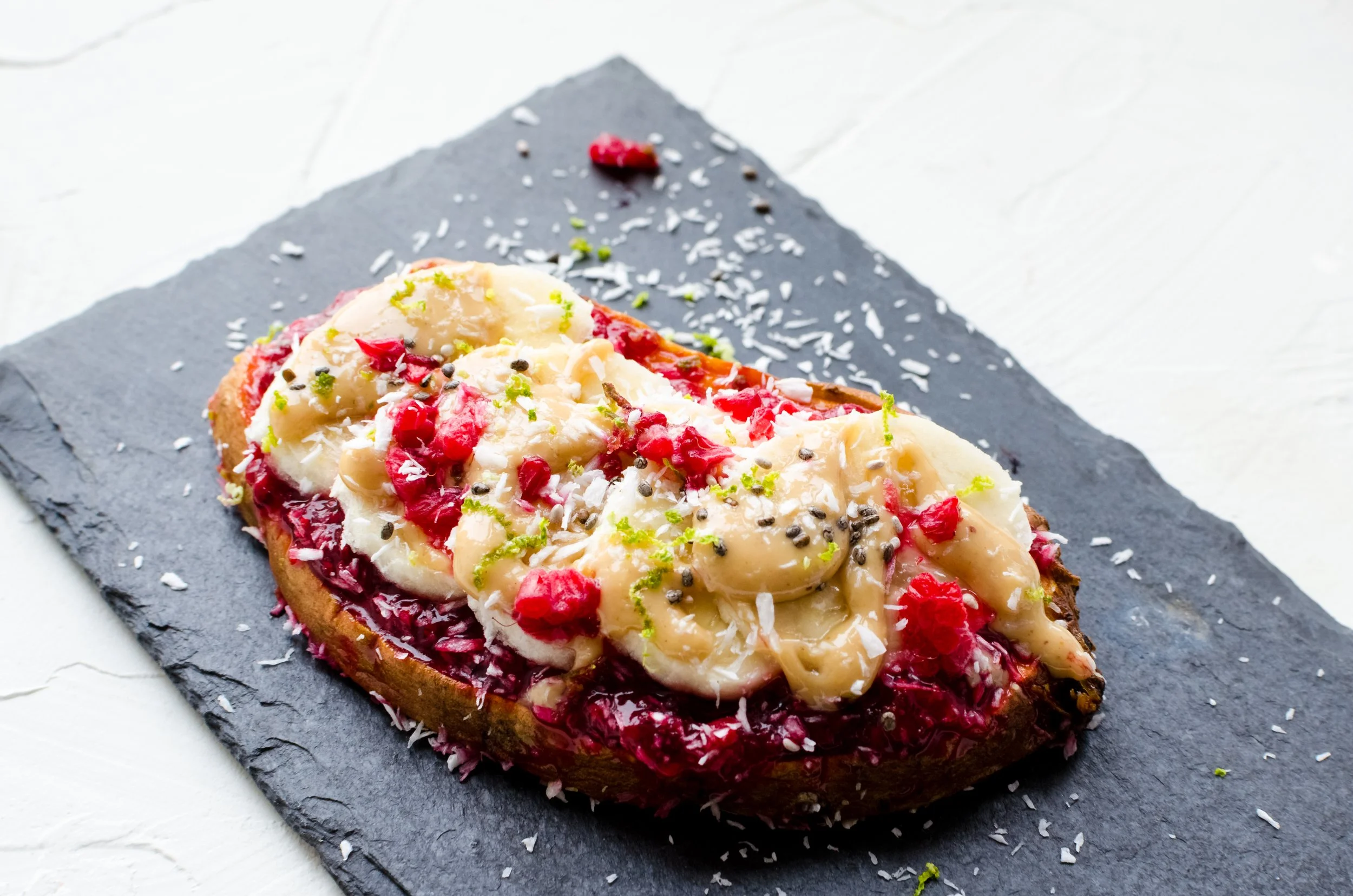 9. Top with sliced banana and drizzle with nut or seed butter (if using).